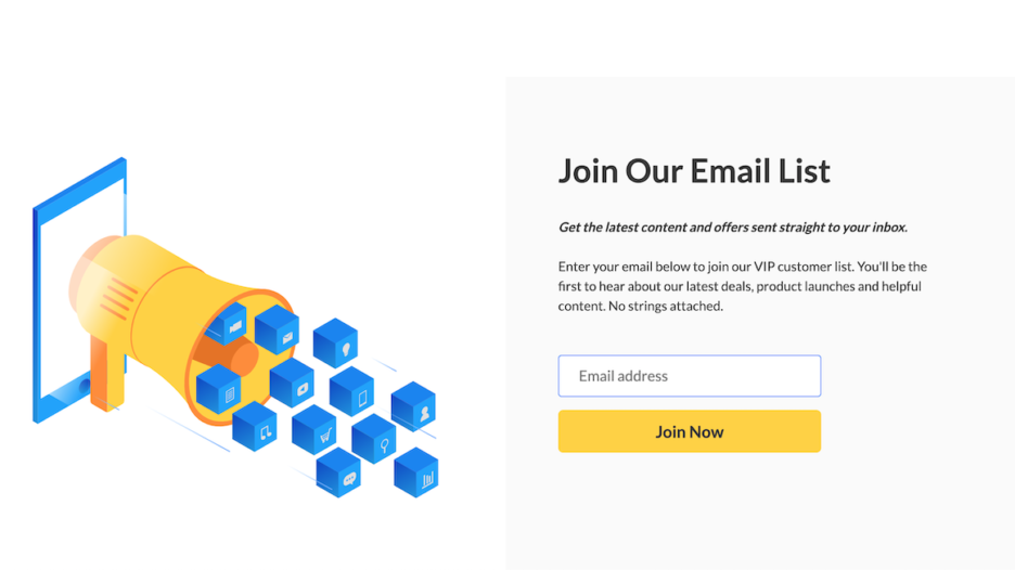 Another way to frame the plain email signup is by giving customers the option to sign up for a “VIP list”, or something along those lines. Let the customers know they’ll be first in line for future offers, discounts and new product launches when they join the list.