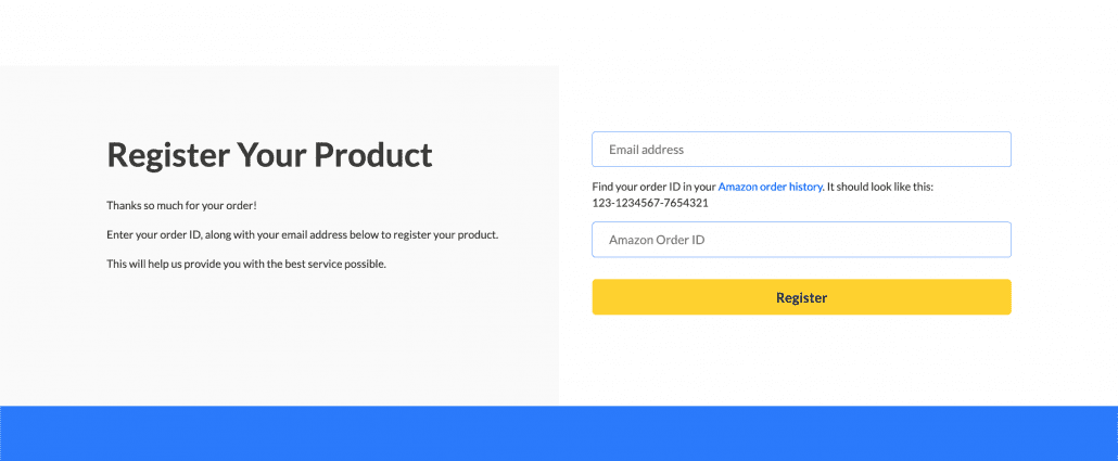Product Insert landing pages are simple email signup landing pages designed to collect an order ID from your customers at the same time.